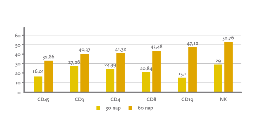 - Placebocsoport: T-sejtek csökkentek.