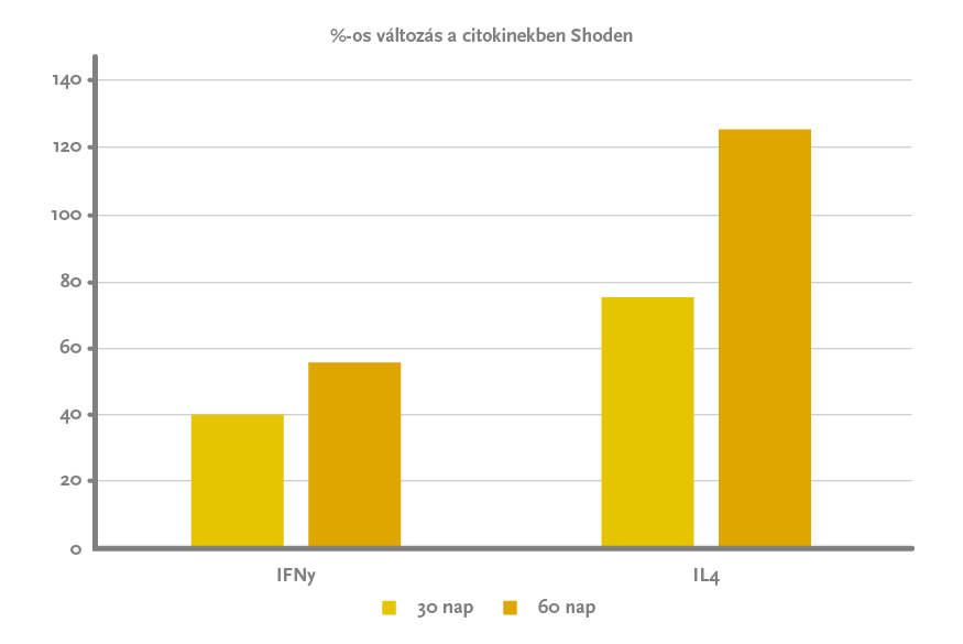 A placebo semennyire, de a Shoden® jelentős mértékben javította az immunválasz minden mért mutatóját, holott kifejezetten részletesen vizsgálták az immunválasz különböző fajtáit.