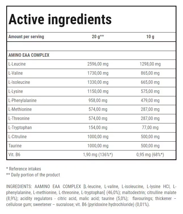 ESSZENCIÁLIS AMINOSAV FORMULA SPORTOLÓKNAK